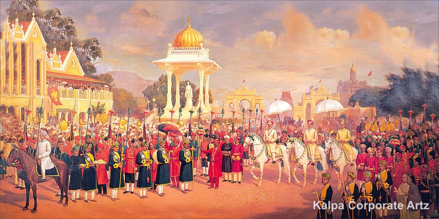 Mysore Dasara paintings capture the grandeur and cultural significance of the Mysore Dasara festival. These artworks showcase royal processions, traditional ceremonies, and the magnificent celebration of Karnataka's cultural heritage.